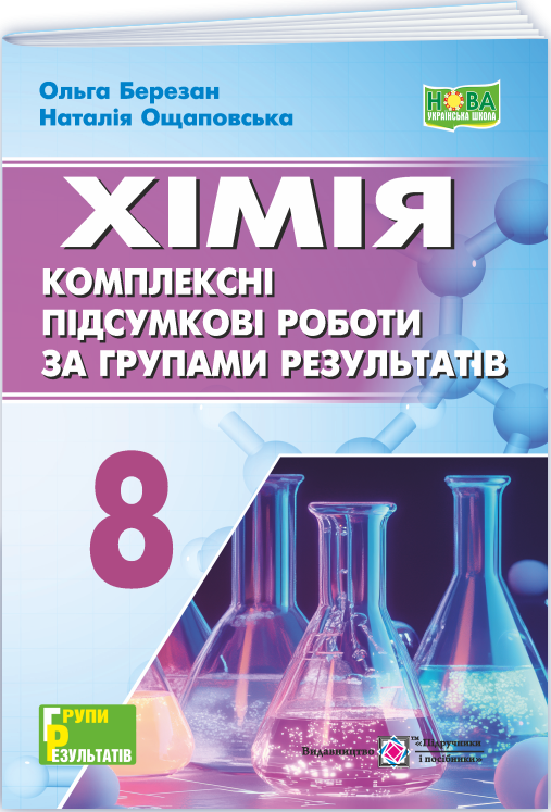 Посібник укладено відповідно до вимог чинної модельної навчальної програми «Хімія. 7-9 класи» для закладів загальної середньої освіти (Григорович О. В.). Він призначений для діагностування навчальних досягнень учнів з хімії у 8 класі НУШ за групами результатів. Для учнів 8 класу і вчителів хімії.
