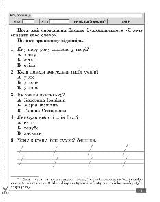 У ньому містяться 9 діагностичних робіт для проведення підсумкового оцінювання навчальних досягнень з української мови та читання учнів 2-го класу з метою відстеження особистісного розвитку учнів. Завдання різні за змістом, ступенем складності та формою виконання і спрямовані на перевірку компетентностей другокласників (характеристик результатів навчання) упродовж навчального року. Посібник включає діагностичні роботи з української мови та читання з усіма видами мовленнєвої діяльності.