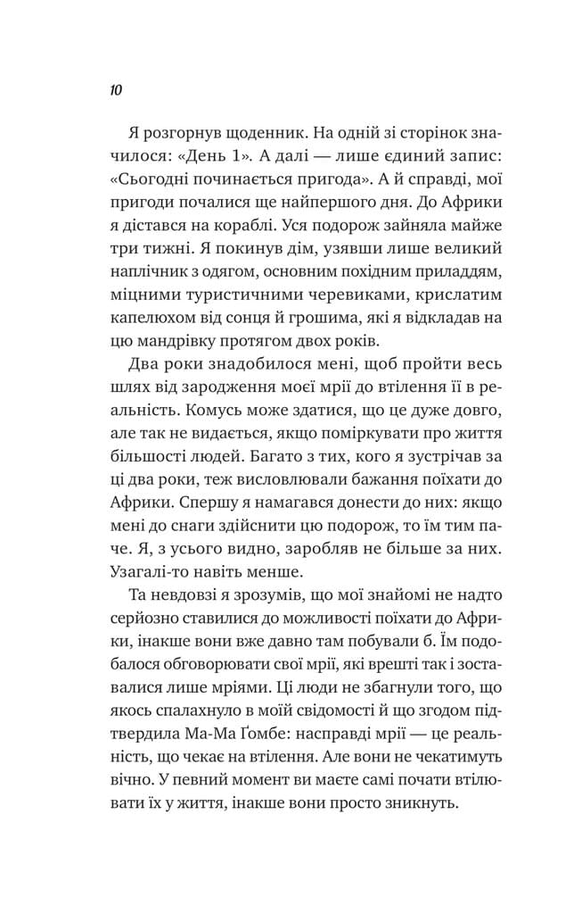 Джек має мрію — побачити Африку й велику п’ятірку її тварин. Ма-Ма Ґомбе за довге життя здійснила не одну свою мрію, але не найзаповітнішу: знайти дорогу до колиски світу, про яку їй розповідав батько. Одного дня їхні шляхи перетнуться, і Ма-Ма Ґомбе допоможе Джекові відкрити для себе Африку. Однак у цій подорожі він віднайде значно більше — свою велику п’ятірку для життя, зустріне справжнього друга й наставника, який на багато років стане для нього провідною зорею, і впустить у себе Африку — неповторний і загадковий світ, який змінить Джека назавжди. А ще він стане тим, хто допоможе Ма-Ма Ґомбе здійснити її найзаповітнішу мрію.