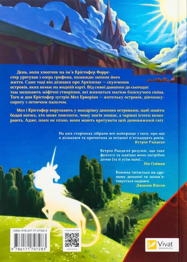 День, коли хлопчик на ім’я Крістофер Форрестер урятував з озера грифона, назавжди змінив його життя. Саме тоді він дізнався про Архіпелаг — скупчення островів, яких немає на жодній карті. Від сивої давнини до сьогодні там мешкають міфічні створіння, які живляться магією блискучого сяйва. Того ж дня Крістофер зустрів Мел Ерворіан — жительку островів, дівчинку-сироту з летючим пальтом.