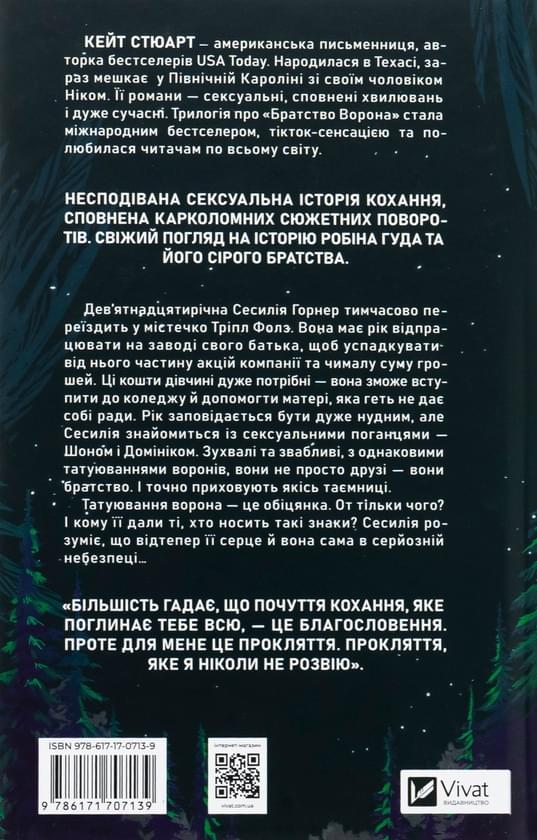 Татуювання ворона — це обіцянка. От тільки чого? І кому її дали ті, хто носить такі знаки? Сесилія розуміє, що відтепер її серце й вона сама в серйозній небезпеці…
