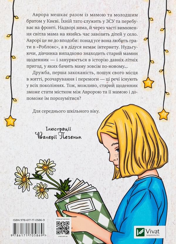Аврора мешкає разом із мамою та молодшим братом у Києві. Їхній тато служить у ЗСУ та перебуває на фронті. Надворі зима, й через часті вимкнення світла мама на якийсь час завозить дітей у село. Аврорі це не до вподоби: понад усе вона любить грати в «Роблокс», а в дідуся немає інтернету. Нудьгуючи, дівчинка випадково знаходить старий мамин щоденник — і занурюється в історію давніх літніх пригод, у яких бачить маму зовсім по-новому...