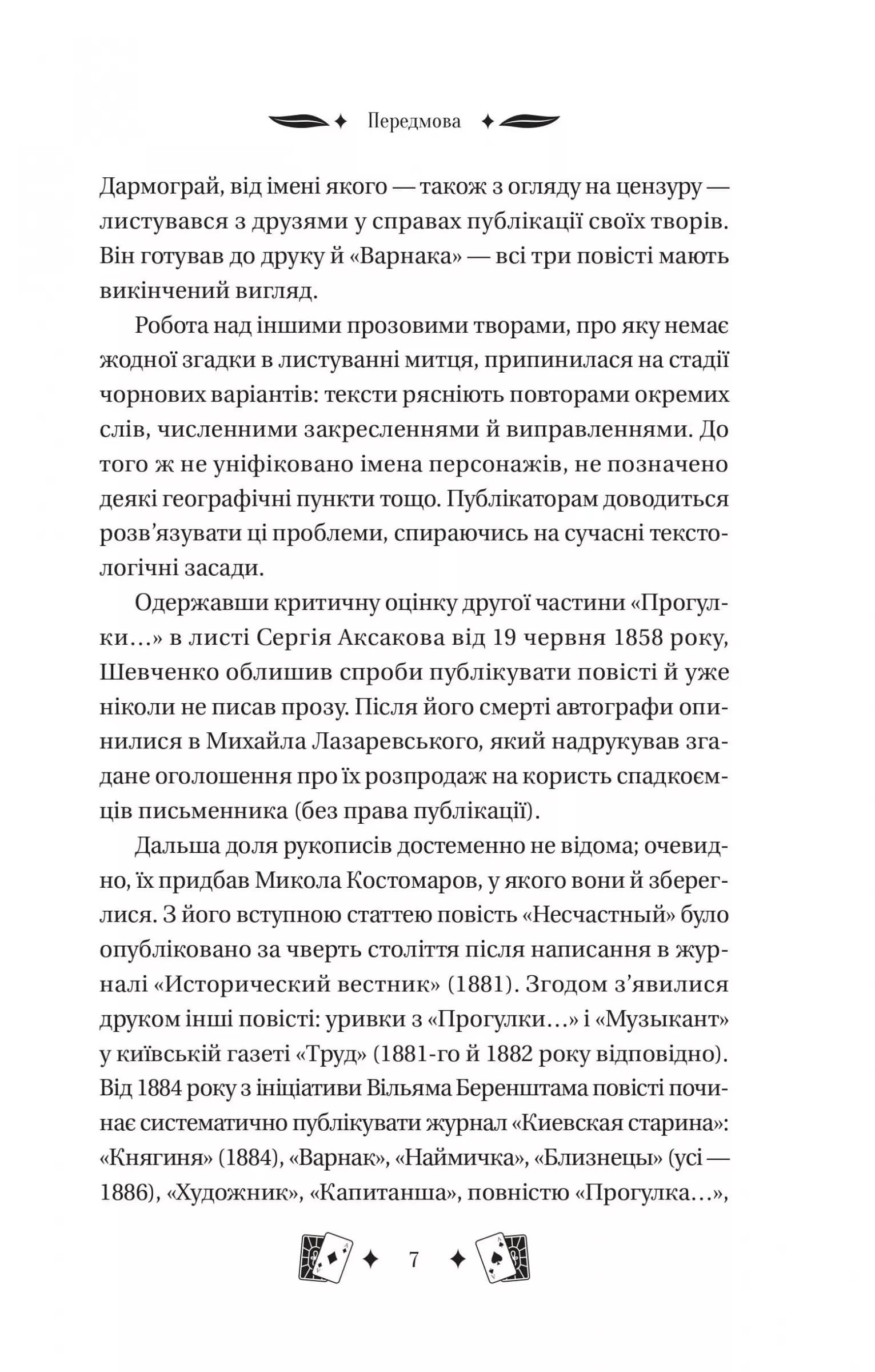 Зворушлива історія наймички, яка до кінця життя не могла зізнатися у своєму материнстві, відверта сповідь колишнього каторжника Кирила, моторошні сільські бувальщини та драматична доля княгині Катрусі — три перші Шевченкові повісті поновому розкривають нам світ людини першої половини ХІХ століття, її переживання, змагання, мрії та розчарування. Блискучі переклади українською мовою знаних майстрів слова Бориса Антоненка-Давидовича й Віктора Сапіцького ніби наближають Шевченка до нашого часу: його герої та героїні живуть, кохають, страждають і борються, як ми сьогодні.
