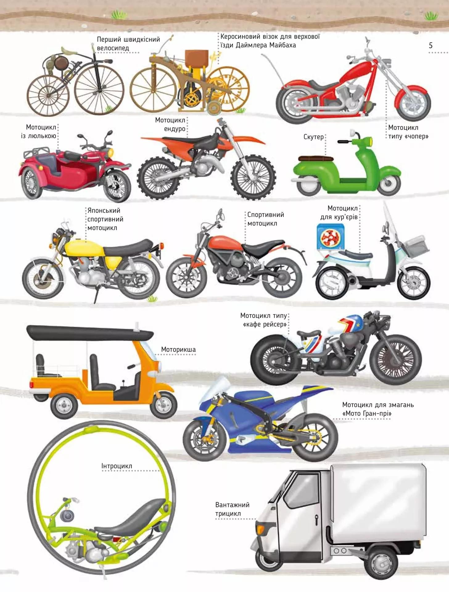 У цій яскравій книзі юні дослідники знайдуть безліч докладних реалістичних зображень найрізноманітніших видів машин, які їм відомі, і навіть такі, що вони ніколи не бачили. Серед них понад 500 транспортних засобів, що літають і плавають, їздять дорогами та рейками, працюють на будівництві й досліджують космос.