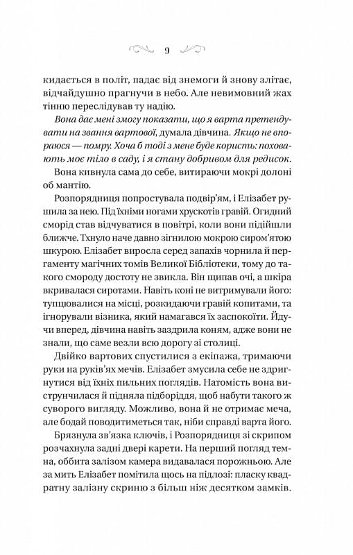 Усі чаклуни — злі. Елізабет знала цю істину відтоді, відколи пам’ятала себе. Адже вона зросла при одній з Великих Бібліотек Остерміру, серед витворів чаклунства — небезпечних магічних гримуарів, які шепочуться на полицях і брязкають залізними ланцюгами. Один необережний рух — і гримуар перетвориться на смертельного монстра з чорнила та шкіри.