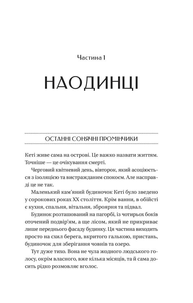 36-річна Кеті мешкає сама на маленькому острові Сходи Якова в кам'яному будинку, більше схожому на фортецю, осторонь від цивілізації. Колись — зірка світу мистецтва, тепер вона рятується від жахливої втрати в самотності й живописі. Навколо ані душі, немає інтернету й телебачення, лише декілька дисків із класичною музикою. Кеті не спілкується з мешканцями інших островів, тільки іноді буває на материку — не хоче ятрити рани, які так довго загоювала.
