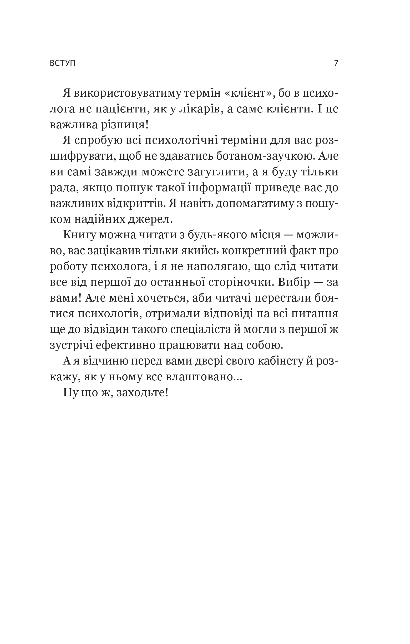 Катерина Гольцберг, психологиня з двадцятирічним досвідом, розповідає про все, що має знати людина, яка переступає кабінет психолога і хоче отримати реальну допомогу. Описує процеси роботи, розвінчує міфи, підказує, як обрати тип психологічної допомоги, як формувати запит. Від цих знань залежить те, наскільки якісною буде допомога.