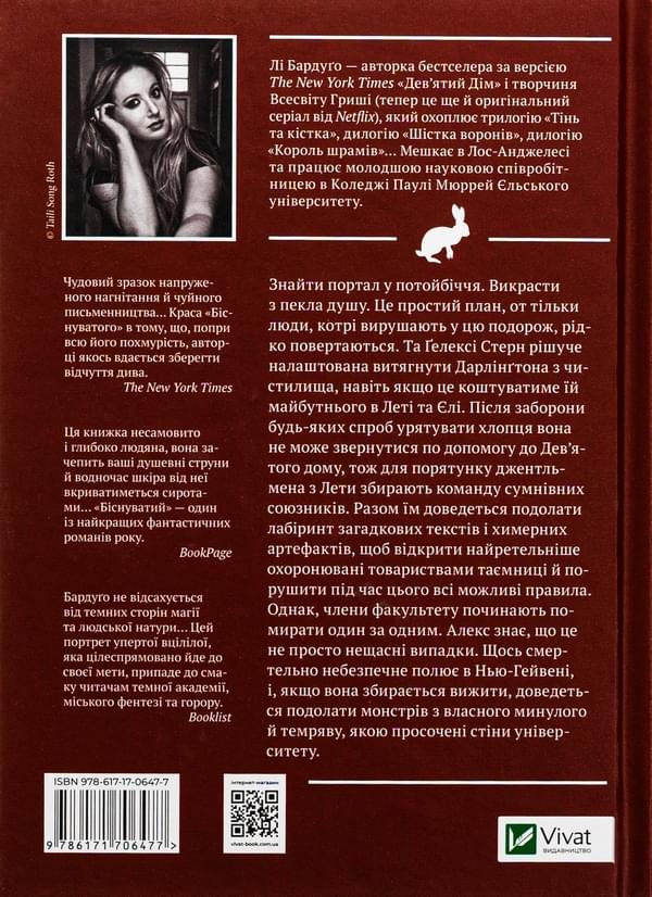 Знайти портал у потойбіччя. Викрасти з пекла душу. Це простий план, от тільки люди, котрі вирушають у цю подорож, рідко повертаються. Та Ґелексі Стерн рішуче налаштована витягнути Дарлінґтона з чистилища, навіть якщо це коштуватиме їй майбутнього в Леті та Єлі. Після заборони будь-яких спроб урятувати хлопця вона не може звернутися по допомогу до Дев’ятого дому, тож для порятунку джентльмена з Лети збирають команду сумнівних союзників. Разом їм доведеться подолати лабіринт загадкових текстів і химерних артефактів, щоб відкрити найретельніше охоронювані товариствами таємниці й порушити під час цього всі можливі правила. Однак, члени факультету починають помирати один за одним. Алекс знає, що це не просто нещасні випадки. Щось смертельно небезпечне полює в Нью-Гейвені, і, якщо вона збирається вижити, доведеться подолати монстрів з власного минулого й темряву, якою просочені стіни самого університету.