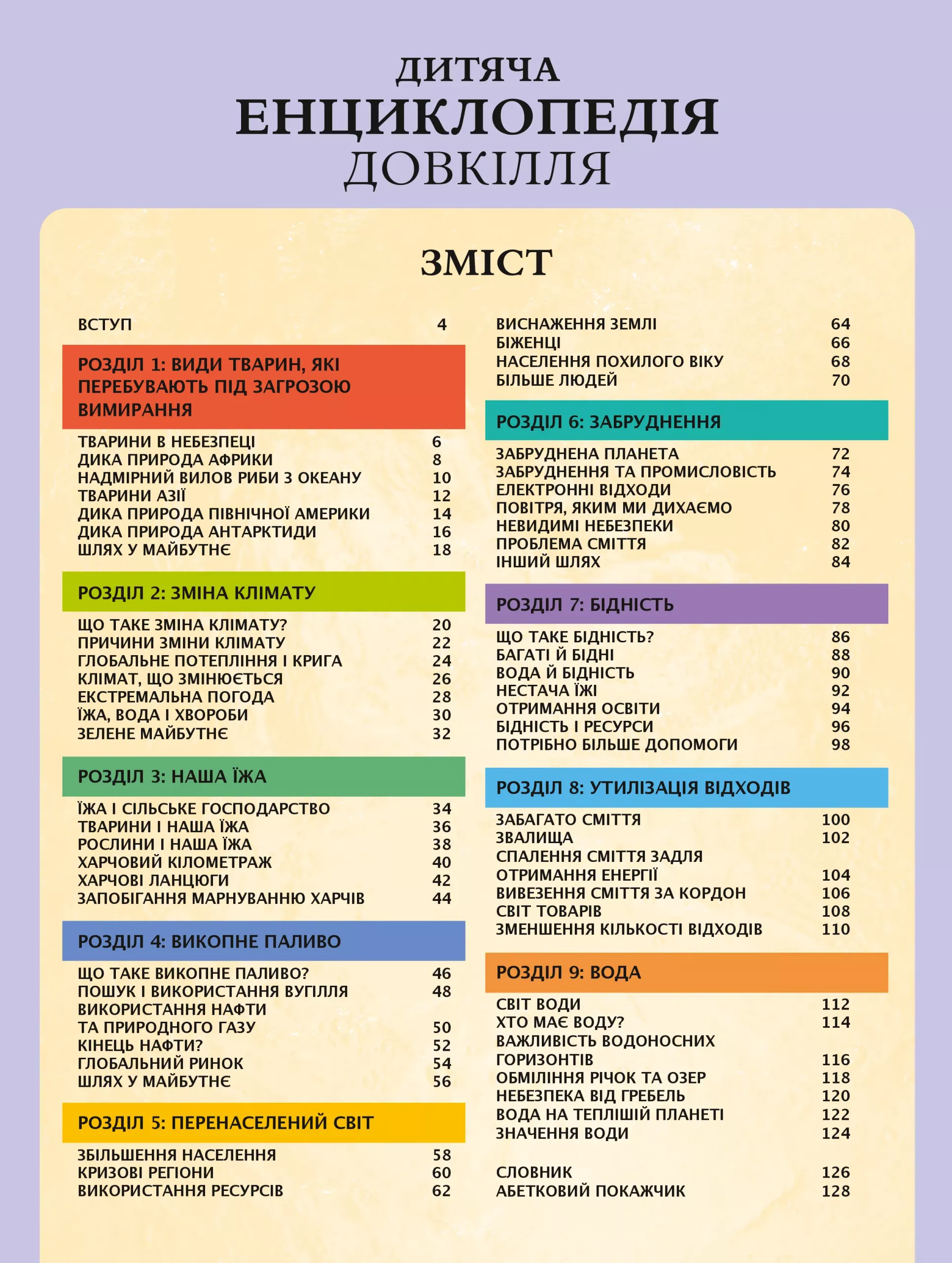 Ця комплексна ілюстрована енциклопедія досліджує найважливіші проблеми, які постають перед нашою планетою та людьми. Вона містить багато цікавих фактів і неймовірних світлин з усього світу, базується на висновках останніх досліджень і є чудовим посібником про кліматичні зміни, забруднення, тварин, що перебувають під загрозою вимирання, про надмірне споживацтво та інші ключові екологічні теми.