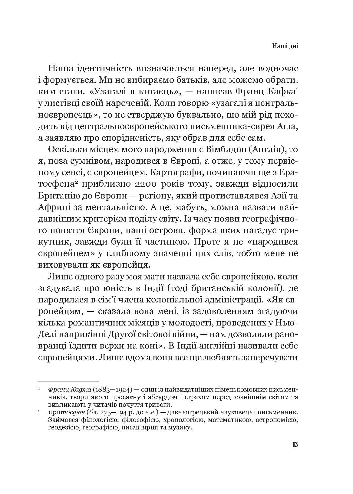 Перед вами книга про Європу в розрізі часу, зібрана з фактів, споминів, щоденникових записів, уривків розмов автора з лідерами європейських країн і звичайними людьми. Книга, через яку видатний «історик сьогодення» веде із читачами важливий діалог про невизначене й тривожне майбутнє рідних земель. Чим є сучасна Європа? Чи легко сьогодні бути європейцем? Куди рухається континент і яке майбутнє на нього чекає? Чи можна стверджувати, що в Європі після закінчення Другої світової війни насправді запанував такий довгоочікуваний мир? До яких наслідків може призвести брутальна повномасштабна війна, розв’язана Путіним 2022 року проти України? До чого спричиняться Брекзит і відкат від демократії в Угорщині та Польщі? Чи не очікує нас зведення нової «залізної завіси» і нова конфронтація європейських народів? Відповіді на ці питаня можуть видатися читачеві неоднозначними, але вони водночас змушують глибоко замислитися над сучасним і майбутнім Європи.