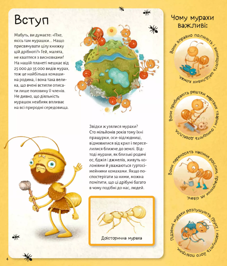 Що ви знаєте про мурах? Що це маленькі трударки, які споруджують великі фортеці? Хіба можуть вони чимось вразити, га? Можуть! Насправді світ мурах дивовижний, і туди, безперечно, варто зазирнути. Мешкають там і страхітливі кровожерливі воячки, і мисливиці за головами, і майстрині, які вправно зрізають листя, тчуть, розводять попелиць тощо. А дехто з місцевих промишляє тим, що вдирається до чужих помешкань і обкрадає їх. Усе як у людей, чи не так? То дізнаймося про мурах більше!