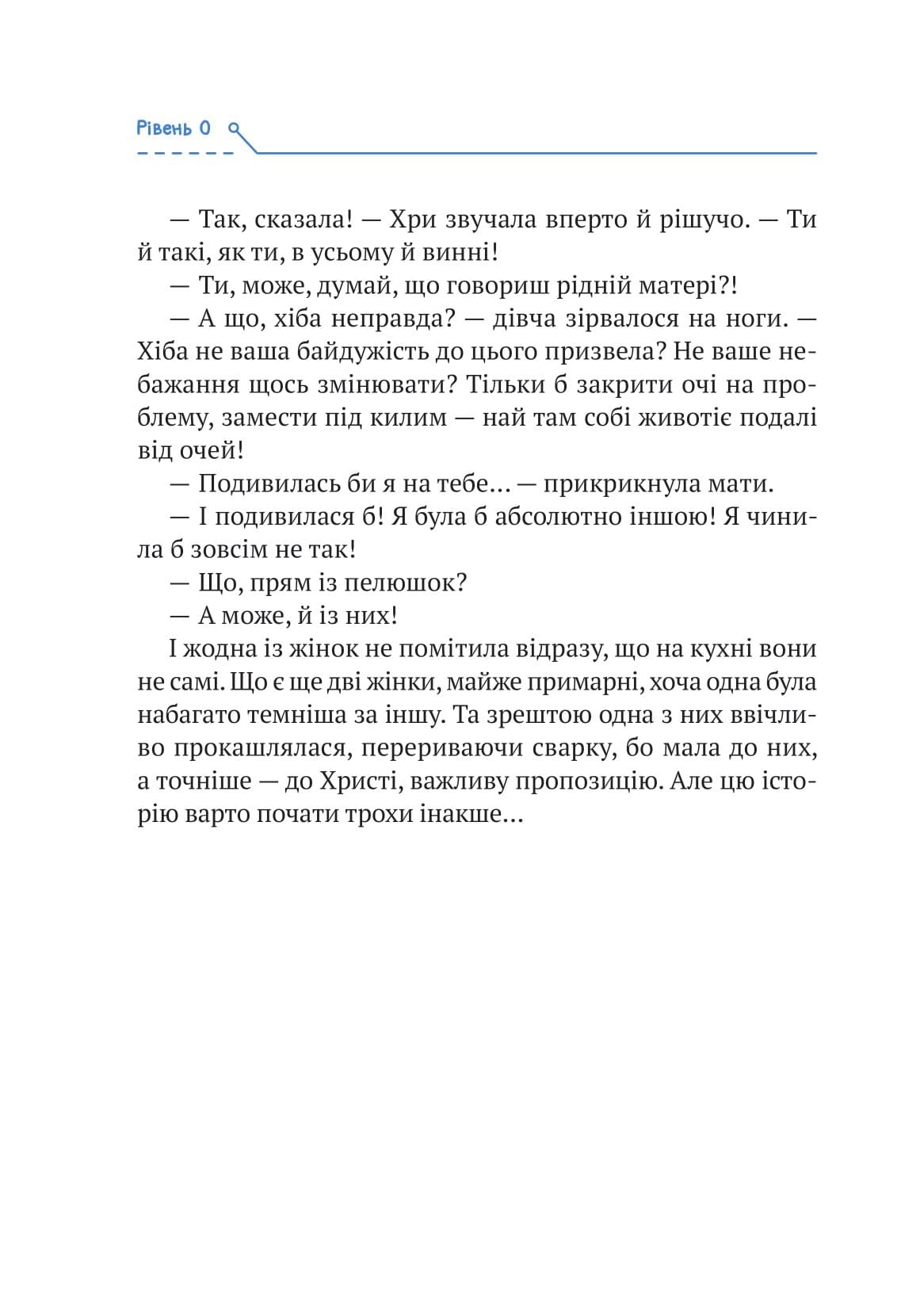 Уявляєте історію, у якій понад десять сюжетних ліній і близько двадцяти фіналів, що залежать тільки від вас? Книжка-квест про життя Ані та її шістнадцятирічної доньки Христі запрошує до гри: вам вирішувати, як саме складеться доля героїнь і майбутнє України. Наприкінці кожного розділу саме ви обиратимете, як рухатимуться сюжет та історія далі. Час розпочинати гру: розгорніть книжку та зробіть свій перший вибір!